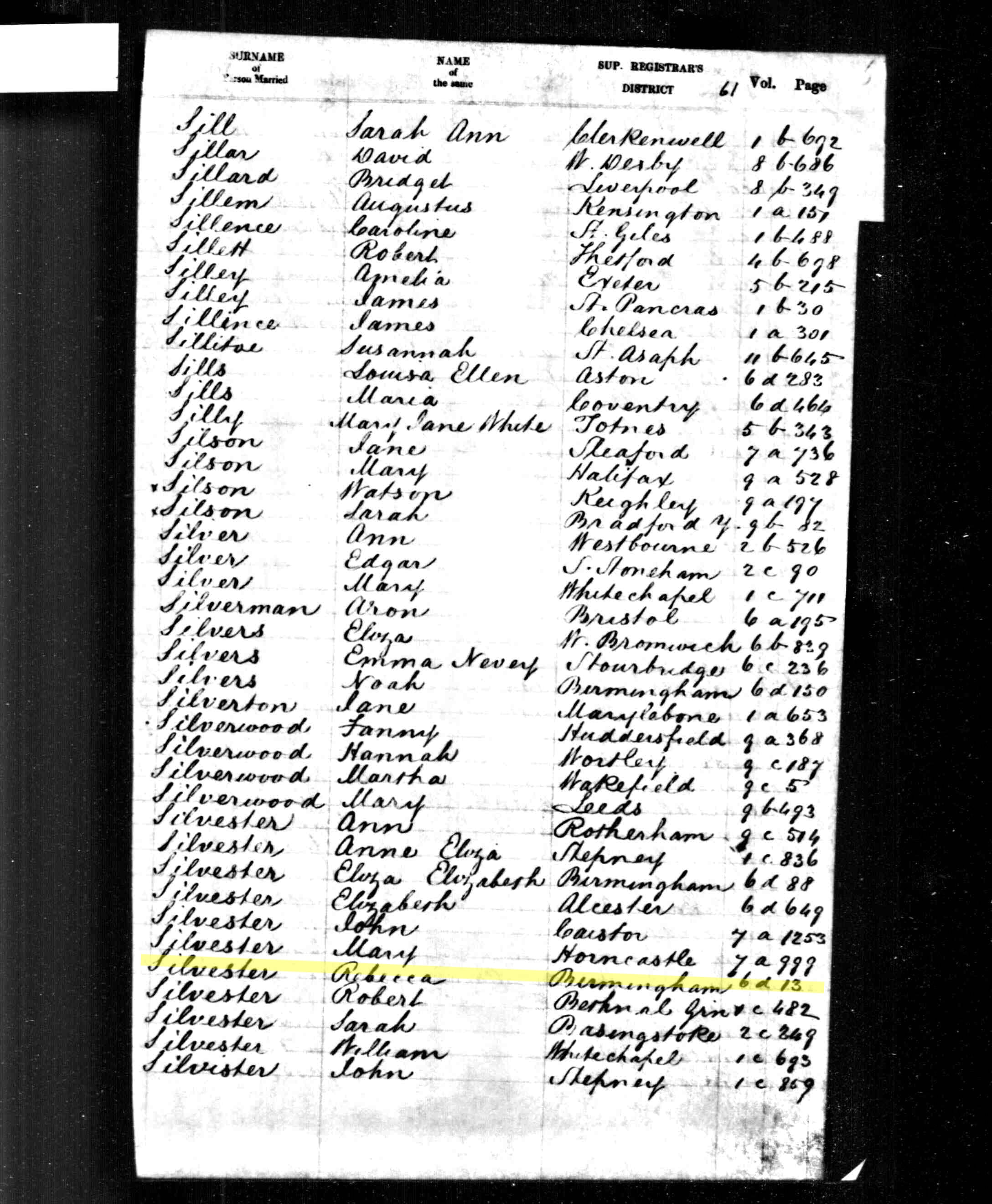 William’s birth certificate if Silvester is his mother’s maiden name, but again it looks like a good match.