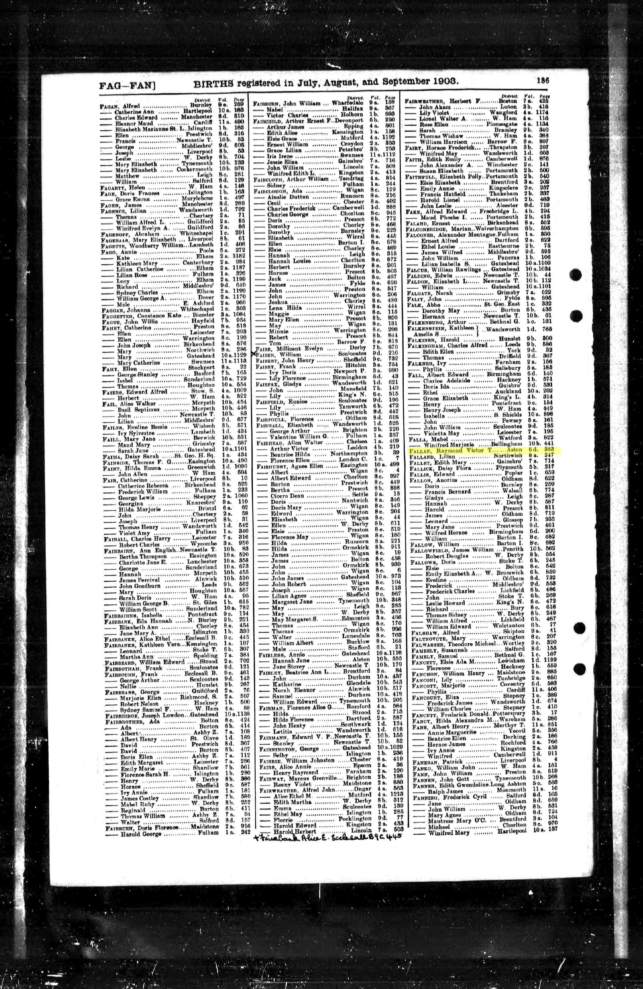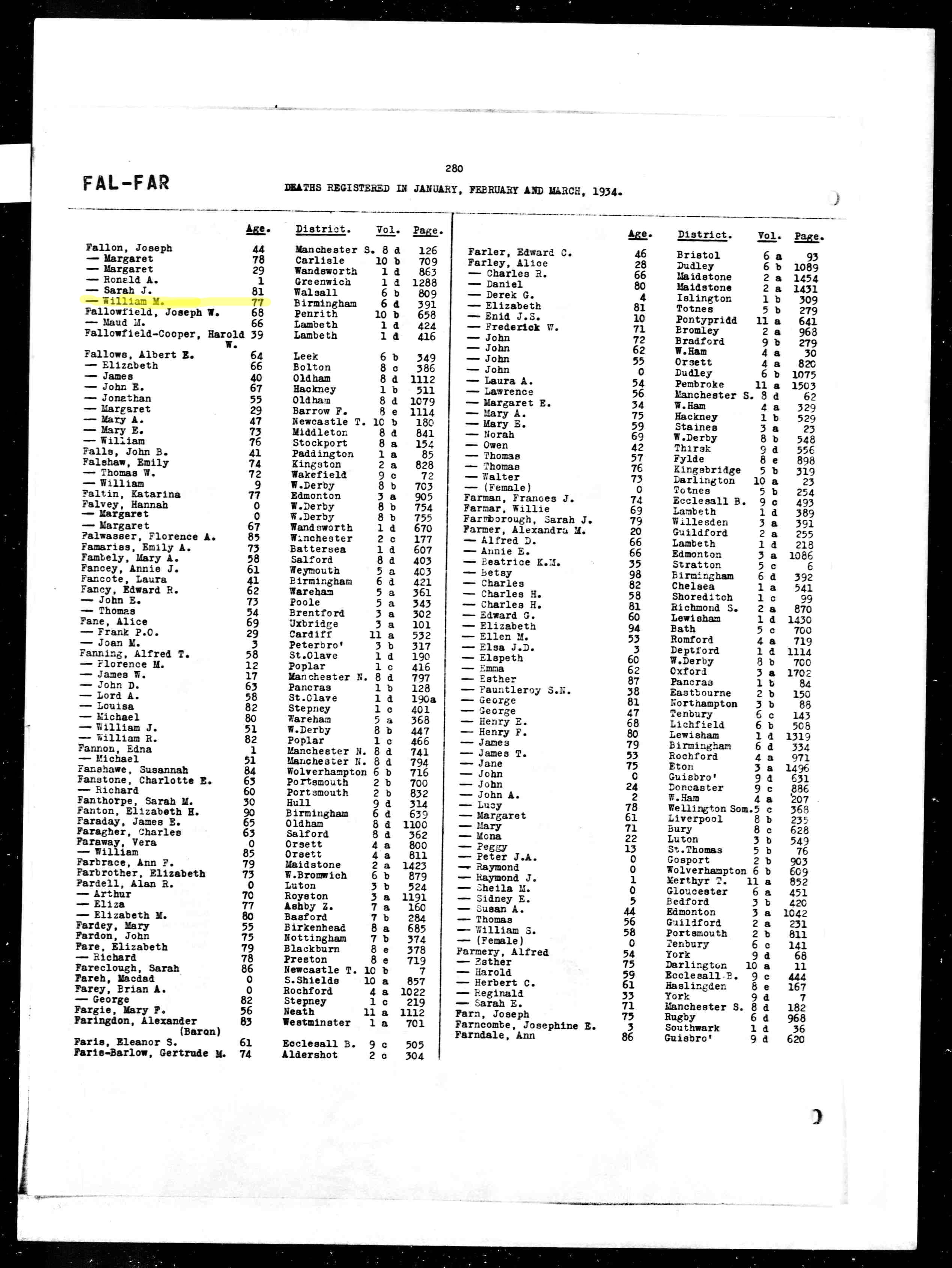 I have no date for Mr Fallon’s Death, but this is the best entry I have: